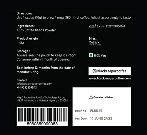 Specification: Black Reaper – Shoreditch Blend – (Dark Roast) – 250g Freshly Ground Coffee Beans Powder Strong, Bag