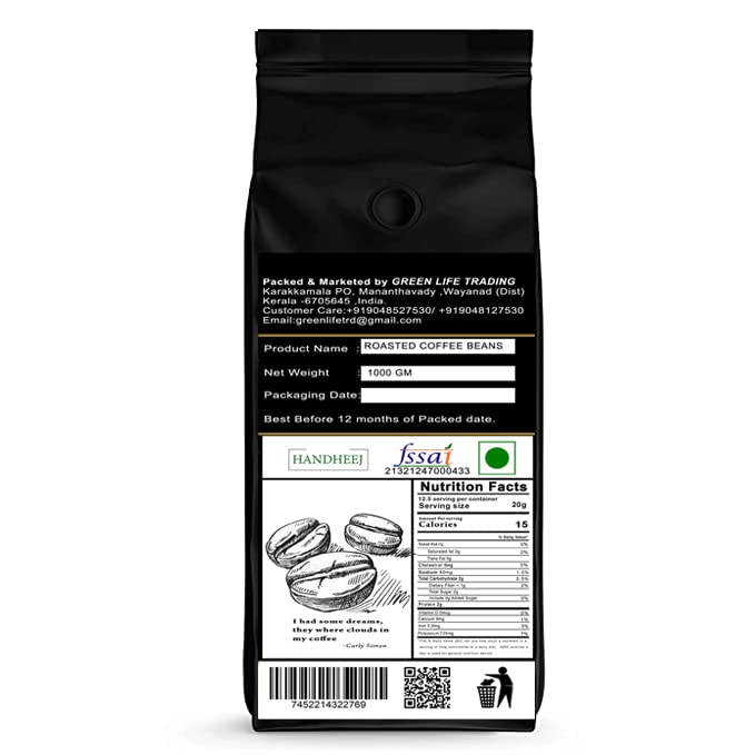 Specification: Handheej green coffee beans A Grade for Roasting 500 * 2gm from south india pack of 2