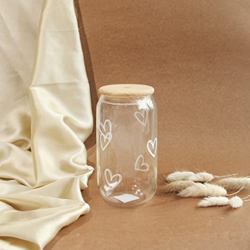 1219 AVENUE Borosilicate 500ml Can Shaped Glass Printed18oz Can Glass with lid and straw (Hearts Can – White)